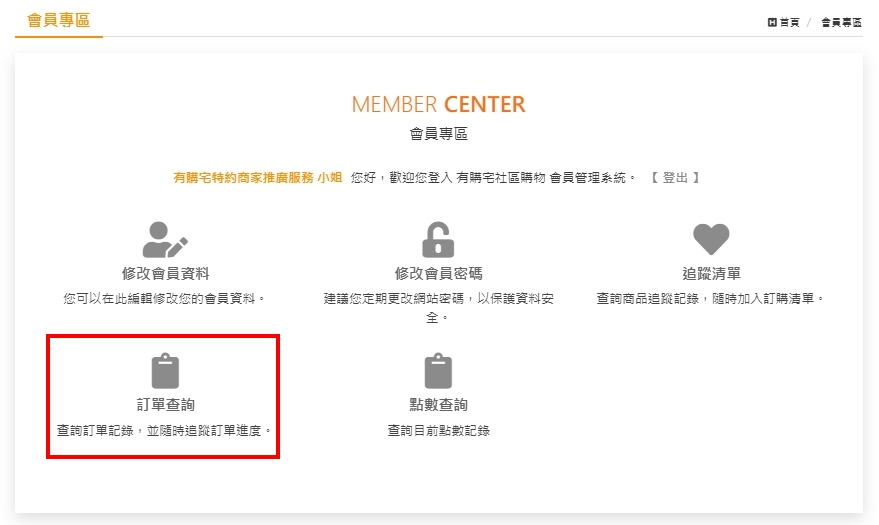 1.請至會員專區→訂單查詢